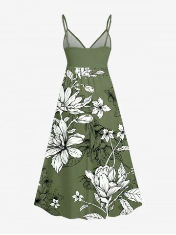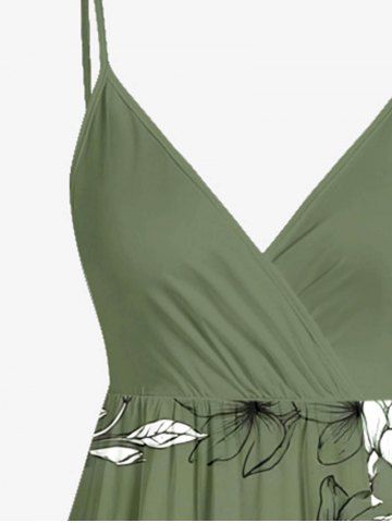 Plus Size Flowers Leaf Print Surplice Hawaii Cami Dress - Plant Green - S