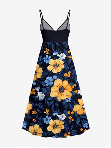 Plus Size Flowers Leaf Print Surplice Hawaii Cami Dress - Black - 3x