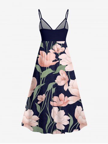 Plus Size Flowers Leaf Print Surplice Hawaii Midi Dress - Pink - Xxs