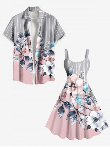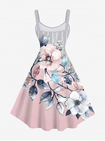 Plus Size Flowers Leaf Stripes Print Hawaii Tank Dress - Light Pink - Xs