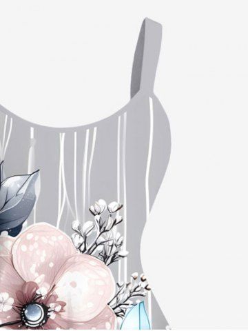 Graphic Dresses > Plus Size Flowers Leaf Stripes Print Hawaii Tank Dress