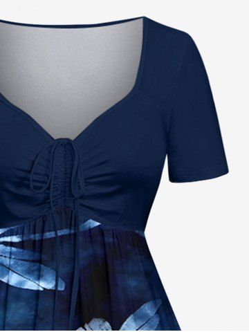 Plus Size Flowers Leaf Tie Dye Print Cinched Hawaii Dress - Cadetblue - 4x