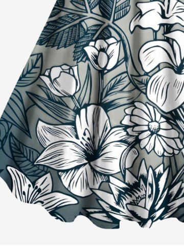 Plus Size Flowers Leaf Tropical Print Hawaii Tank Dress - Gray - 2x
