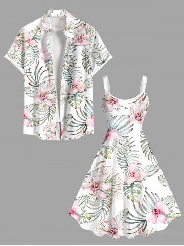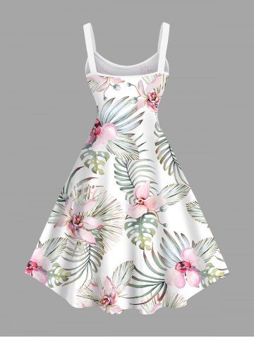 Plus Size Flowers Leaf Tropical Print Hawaii Tank Dress - White - Xxs