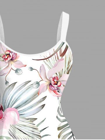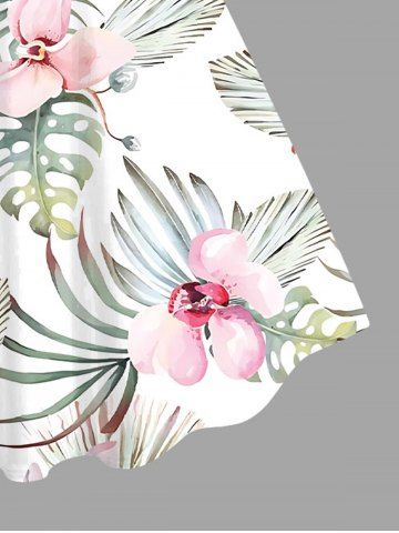 Plus Size Flowers Leaf Tropical Print Hawaii Tank Dress - White - 2x