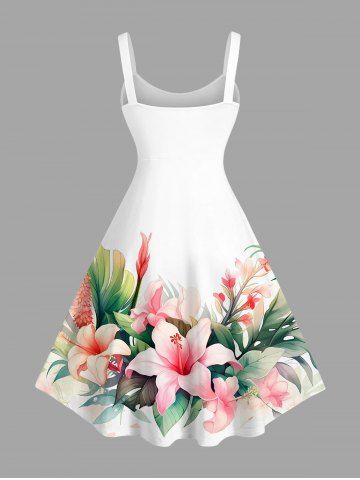 Plus Size Flowers Leaf Tropical Print Hawaii Tank Dress - White - M