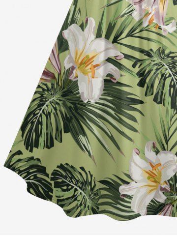 Plus Size Flowers Leaf Tropical Print Ruched Lattice Crisscross Straps Hawaii Dress - Light Green - Xxs