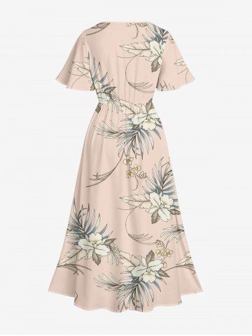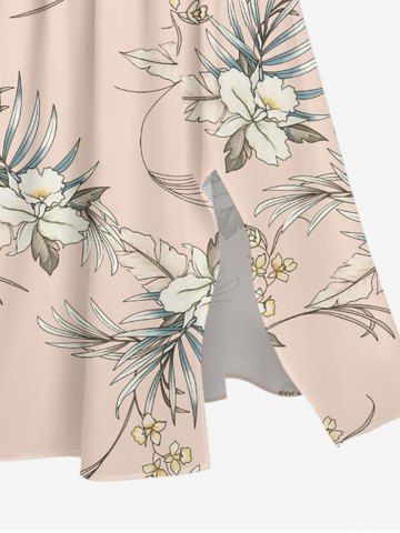 Plus Size Flowers Leaf Tropical Print Split Hawaii Midi Dress - Rose - 4x