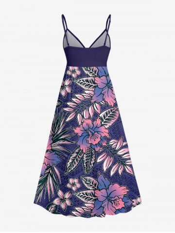 Plus Size Flowers Leaf Tropical Print Surplice Hawaii Cami Dress - Concord - Xs