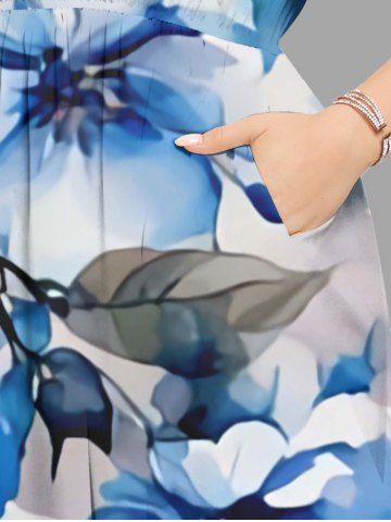 Plus Size Flowers Leaf Watercolor Print Split Hawaii Midi Dress - White - Xs