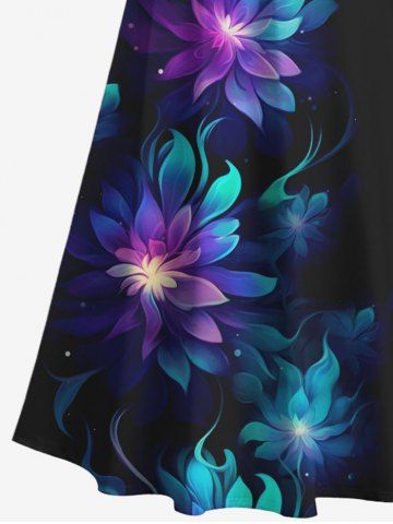 Graphic Dresses > Plus Size Flowers Ombre Glitter 3D Print Cold Shoulder Crisscross Hawaii Maxi Dress