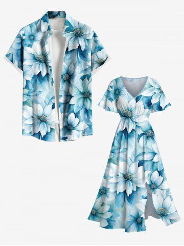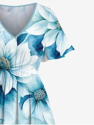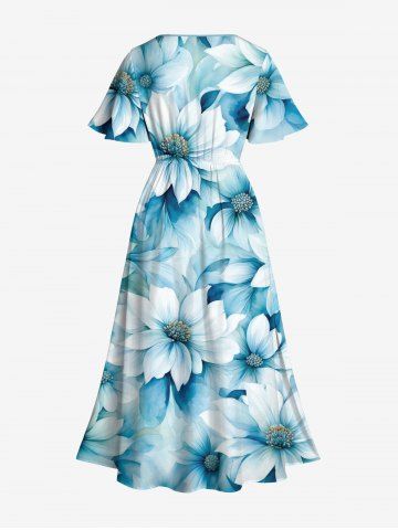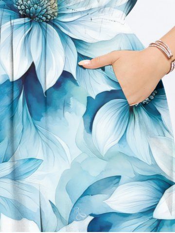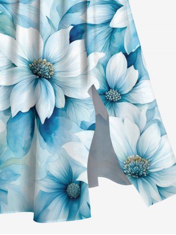 Plus Size Flowers Ombre Print Split Hawaii Midi Dress - Light Blue - M