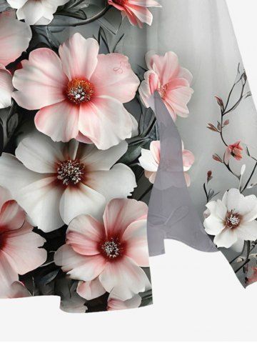 Plus Size Flowers Ombre Print Split Hawaii Midi Dress - Light Gray - 3x