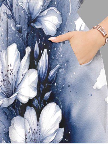 Graphic Dresses > Plus Size Flowers Paint Splatter Print Split Hawaii Midi Dress