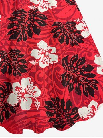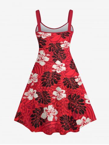 Plus Size Flowers Palm Tree Leaf Print Hawaii Tank Dress - Red - 1x