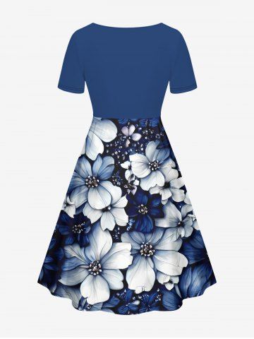 Plus Size Flowers Print Cinched Hawaii Dress - Blue - 2x