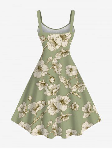 Plus Size Flowers Print Hawaii Tank Dress - Green - 6x