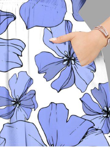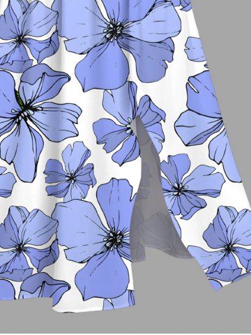 Plus Size Flowers Print Split Hawaii Midi Dress - Blue - 2x