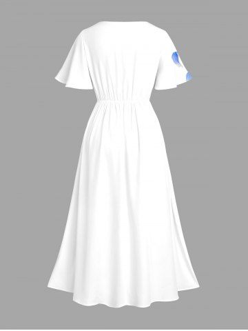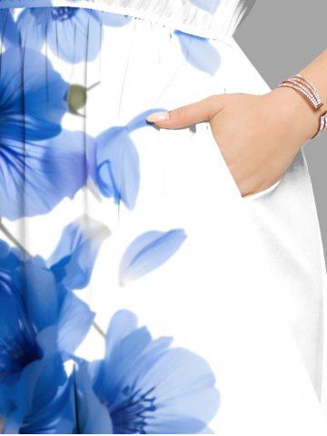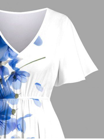 Plus Size Flowers Print Split Hawaii Midi Dress - White - 2x
