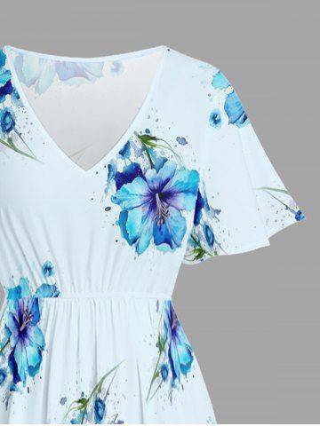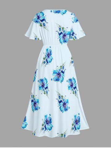 Plus Size Flowers Print Split Hawaii Midi Dress - Light Blue - 6x