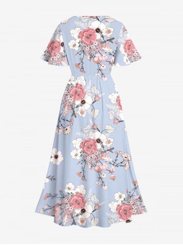 Graphic Dresses > Plus Size Flowers Print Split Hawaii Midi Dress