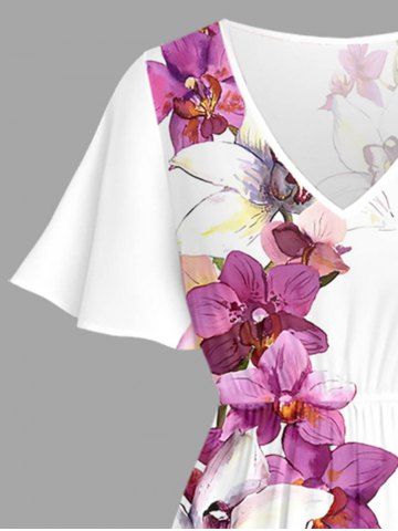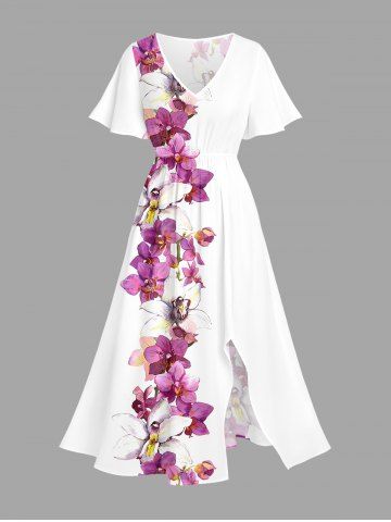 Graphic Dresses > Plus Size Flowers Print Split Hawaii Midi Dress