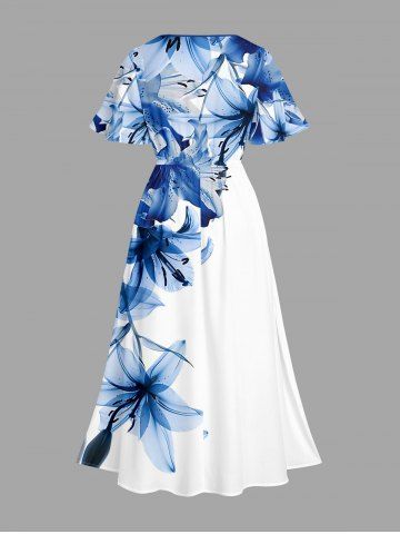 Plus Size Flowers Print Split Hawaii Midi Dress - Blue - M