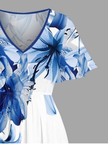 Plus Size Flowers Print Split Hawaii Midi Dress - Blue - 6x