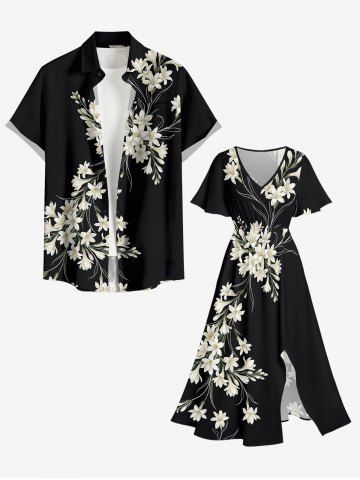 Plus Size Flowers Print Split Hawaii Midi Dress - Black - 4x