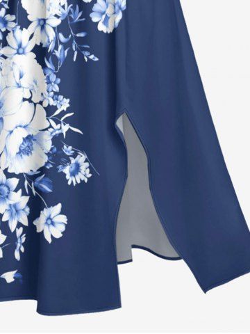 Plus Size Flowers Print Split Hawaii Midi Dress - Cadetblue - 6x