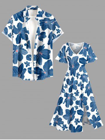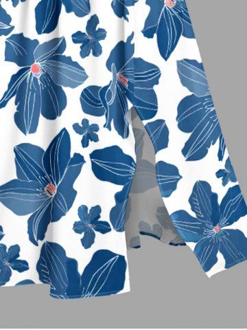 Plus Size Flowers Print Split Hawaii Midi Dress - Blue - 2x