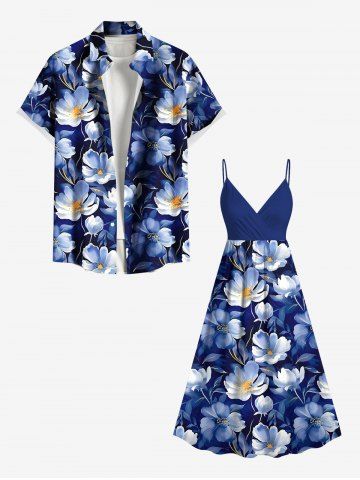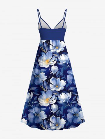Plus Size Flowers Print Surplice Hawaii Cami Dress - Deep Blue - L