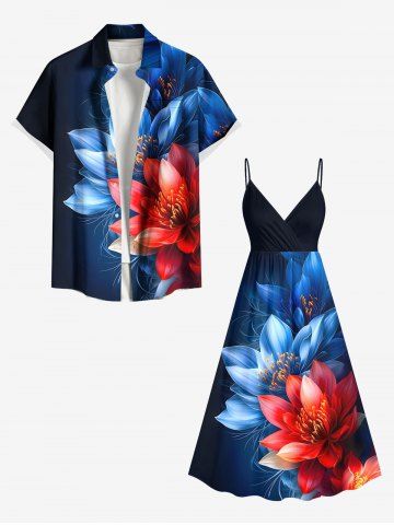 Graphic Dresses > Plus Size Flowers Print Surplice Hawaii Cami Dress