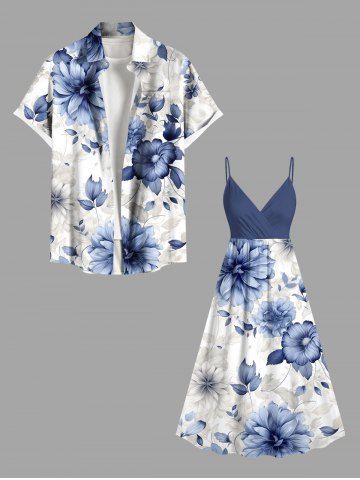 Plus Size Flowers Print Surplice Hawaii Cami Dress - Blue - 2x