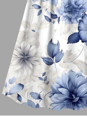 Plus Size Flowers Print Surplice Hawaii Cami Dress - Blue - 4x
