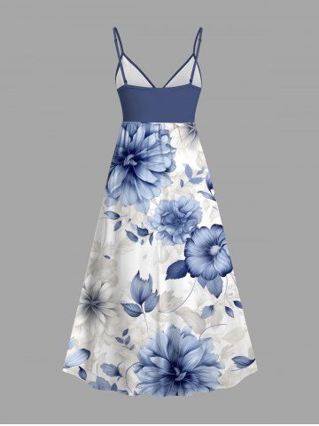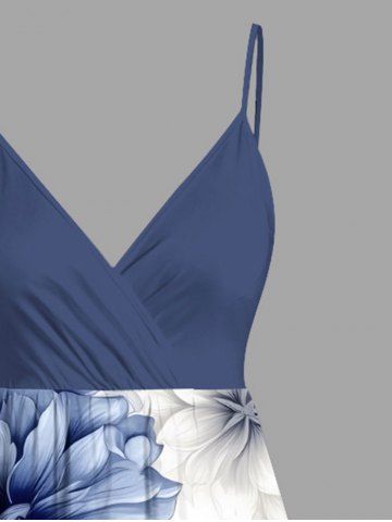 Plus Size Flowers Print Surplice Hawaii Cami Dress - Blue - 5x