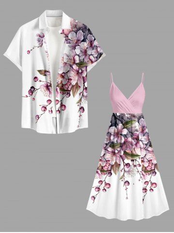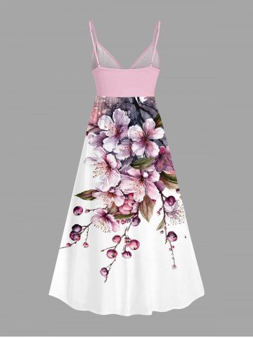 Plus Size Flowers Print Surplice Hawaii Cami Dress - Pink - 4x