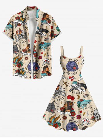 Plus Size Flowers Sharks Cross Skulls Retro Series Print Hawaii Tank Dress - Light Coffee - Xxs