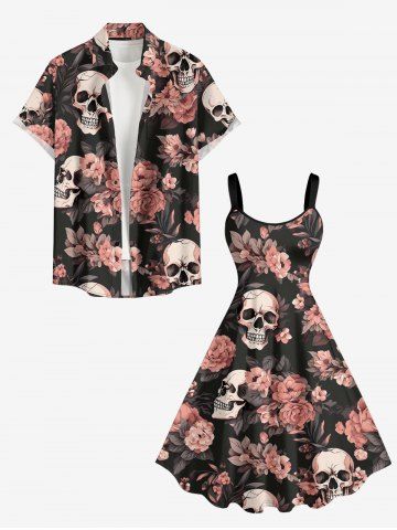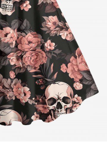 Plus Size Flowers Skulls Print Hawaii Tank Dress - Black - M
