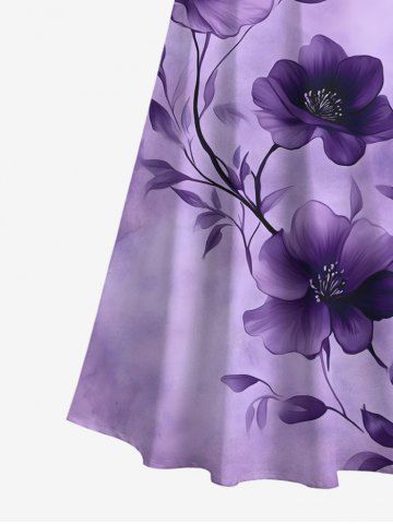 Plus Size Flowers Tie Dye Print Cold Shoulder Crisscross Hawaii Maxi Dress - Purple - L