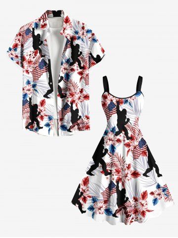 Plus Size Flowers Tropical Leaf Patriotic American Flag Gorilla Print Hawaii Tank Dress - White - Xxs