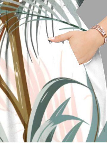 Plus Size Flowers Tropical Leaf Print Split Hawaii Midi Dress - White - S