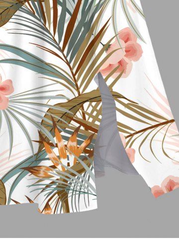 Plus Size Flowers Tropical Leaf Print Split Hawaii Midi Dress - White - L