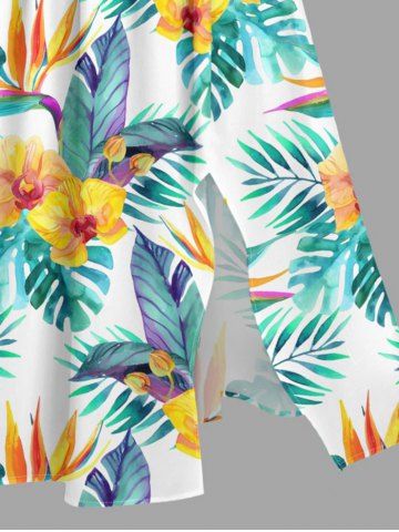 Graphic Dresses > Plus Size Flowers Tropical Leaf Print Split Hawaii Midi Dress