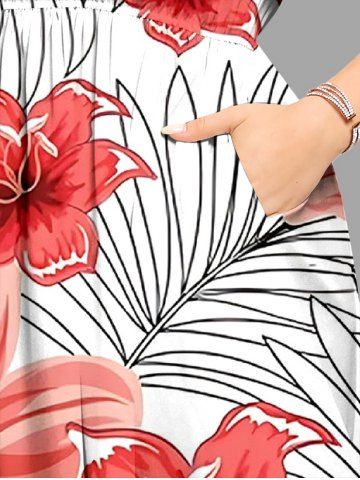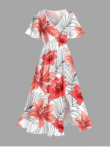 Graphic Dresses > Plus Size Flowers Tropical Leaf Print Split Hawaii Midi Dress