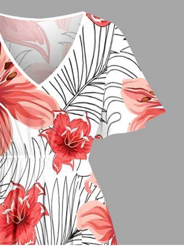 Plus Size Flowers Tropical Leaf Print Split Hawaii Midi Dress - Coral Pink - Xs