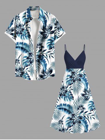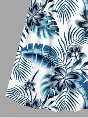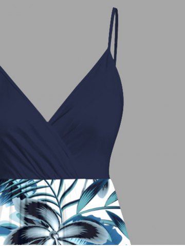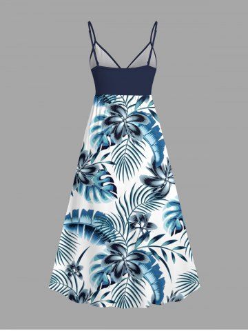 Plus Size Flowers Tropical Leaf Print Surplice Hawaii Cami Dress - Blue - 3x