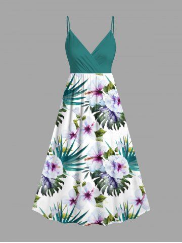 Graphic Dresses > Plus Size Flowers Tropical Leaf Print Surplice Hawaii Cami Dress