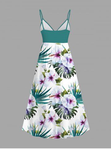 Plus Size Flowers Tropical Leaf Print Surplice Hawaii Cami Dress - Green - S