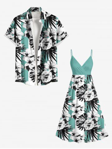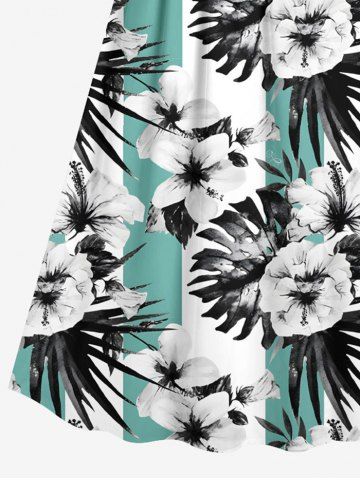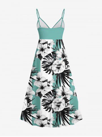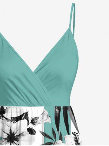 Plus Size Flowers Tropical Leaf Print Surplice Hawaii Cami Dress - Green - Xs